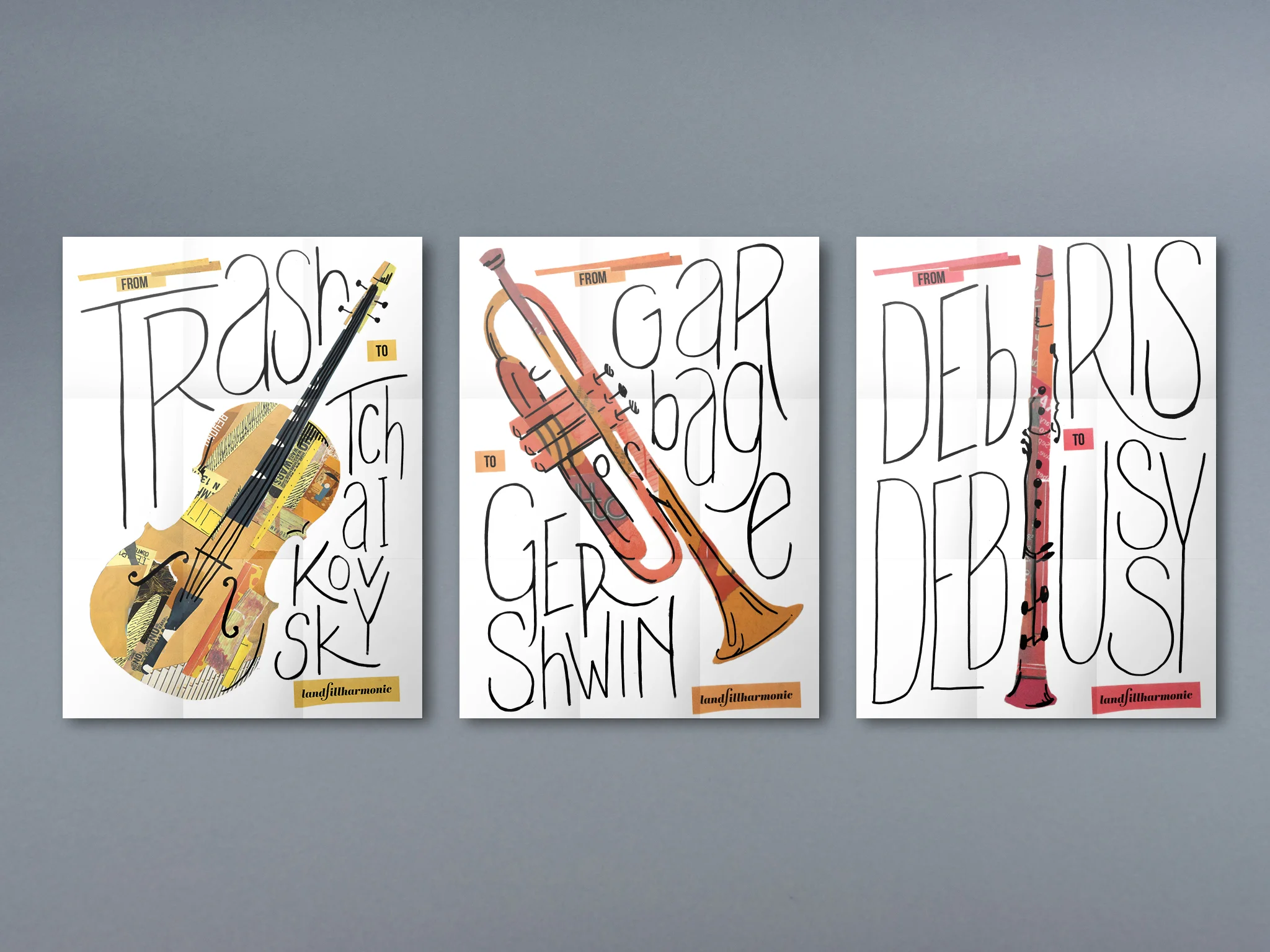 I then created an identity system for the project, including letterhead, an envelope, business cards, and a thank you card, as well as a series of special edition stamps that use elements from the collaged instruments.